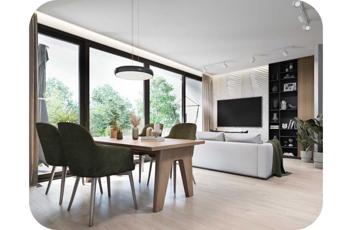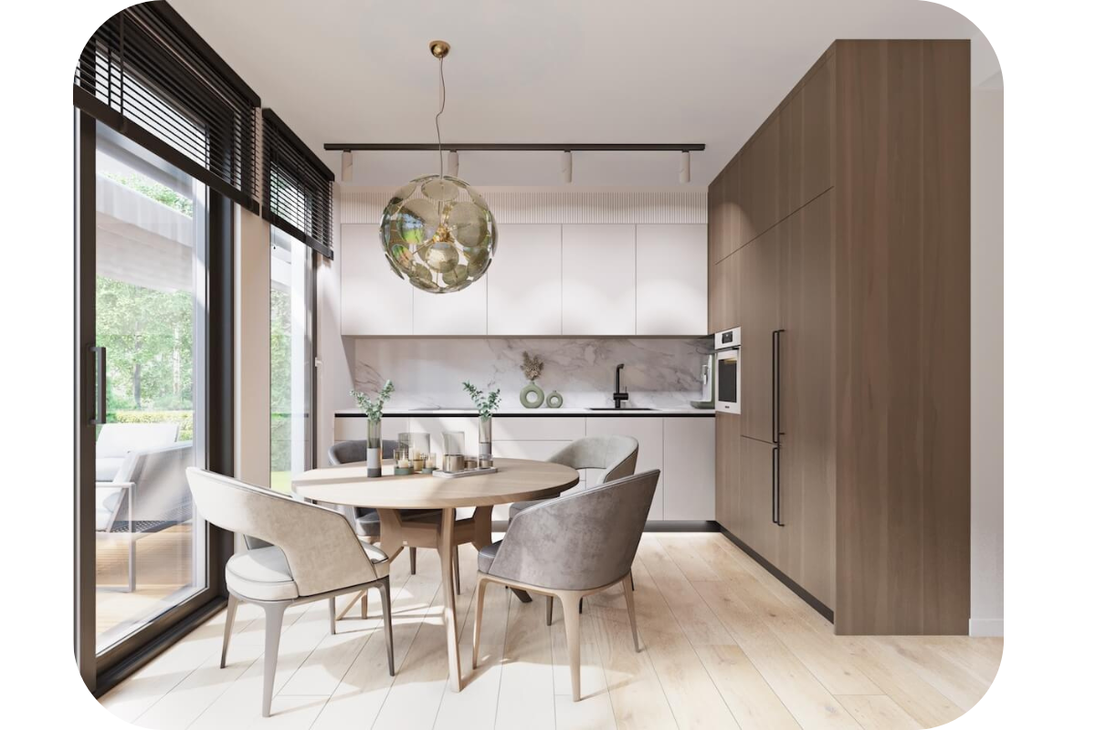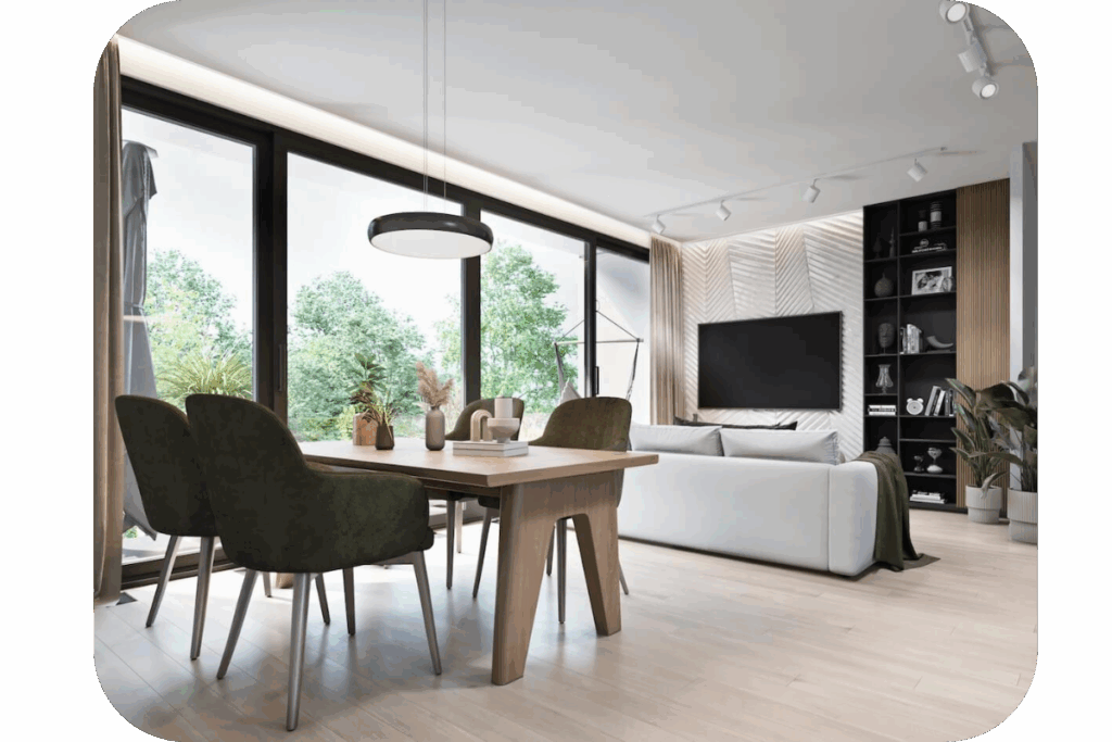 Mieszkania na parterze to funkcjonalne, jednopoziomowe przestrzenie z bezpośrednim wyjściem do prywatnych ogródków — idealnych do odpoczynku, zabawy z dziećmi lub letnich spotkań przy grillu.