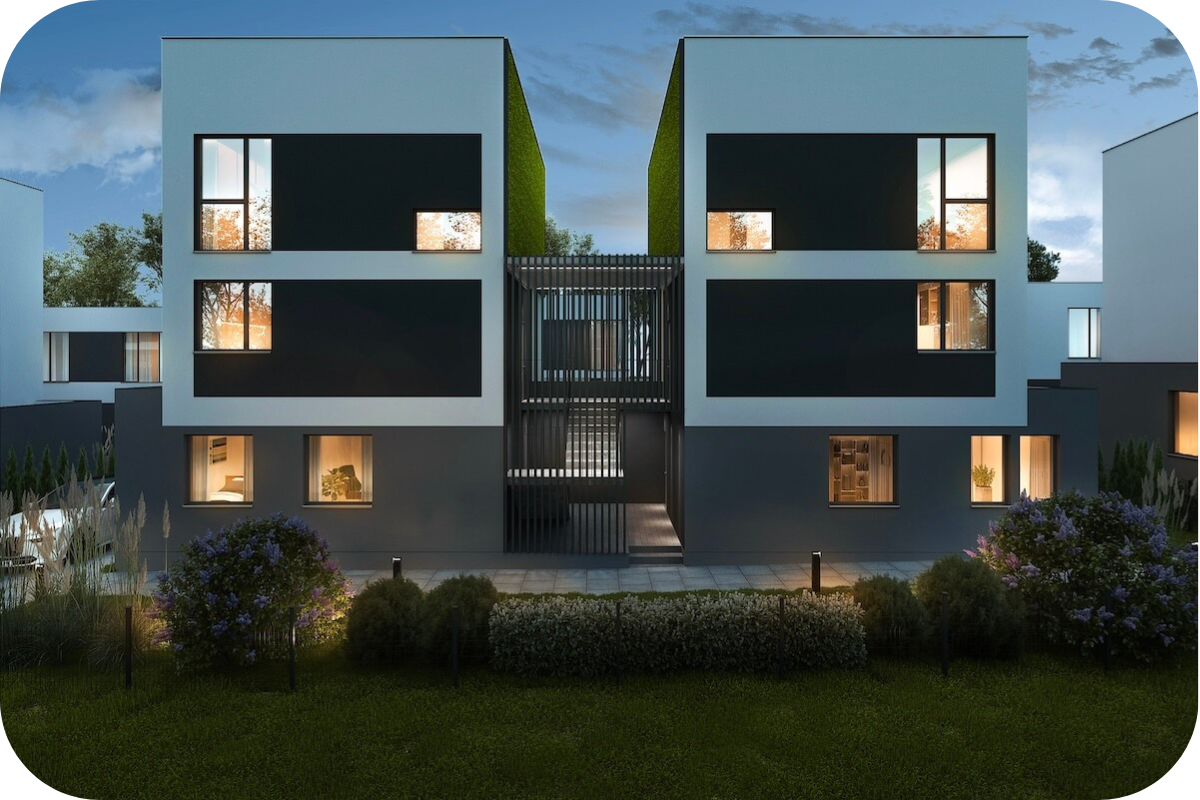 Witaj na Osiedlu Cube Garden – nowoczesnej przestrzeni zaprojektowanej z myślą o komforcie, funkcjonalności i estetyce. Znajdziesz tu 10 kameralnych budynków mieszkalnych w zabudowie bliźniaczej, które przyciągają wzrok nowoczesną architekturą i dopracowanymi detalami. Łącznie oferujemy 20 mieszkań w dwóch starannie zaprojektowanych układach, które zaspokoją potrzeby zarówno singli, par, jak i rodzin z dziećmi.